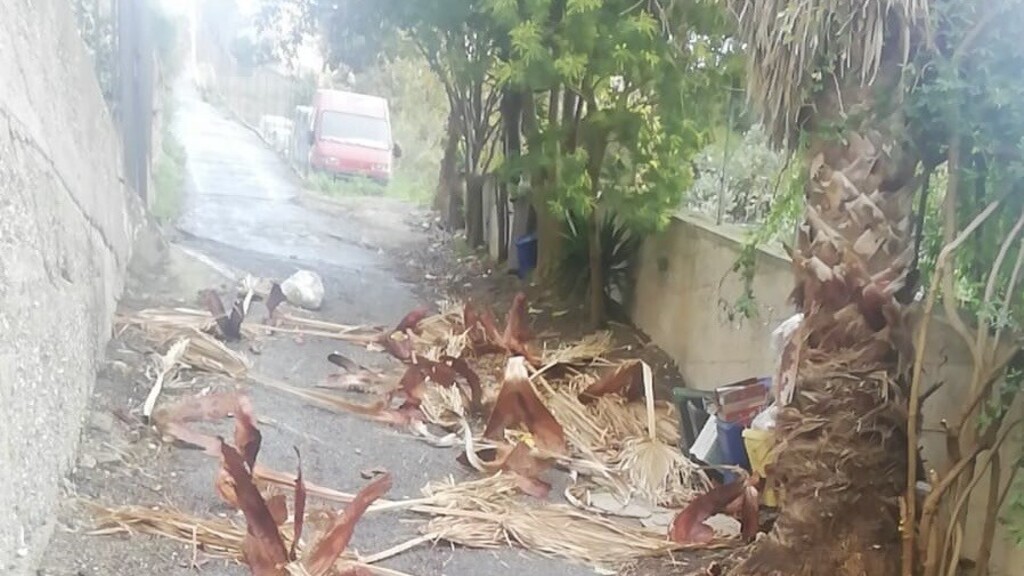 Un altro disagio è causato ai residenti dalla presenza di una palma ormai morta che si trova su strada comunale. Nel momento in cui si verifica maltempo, le foglie cadono su strada senza e ostruiscono il passaggio. La segnalazione è stata più volte inviata alla Castore, secondo quanto riferito dalla residente, ma senza alcuna risposta.