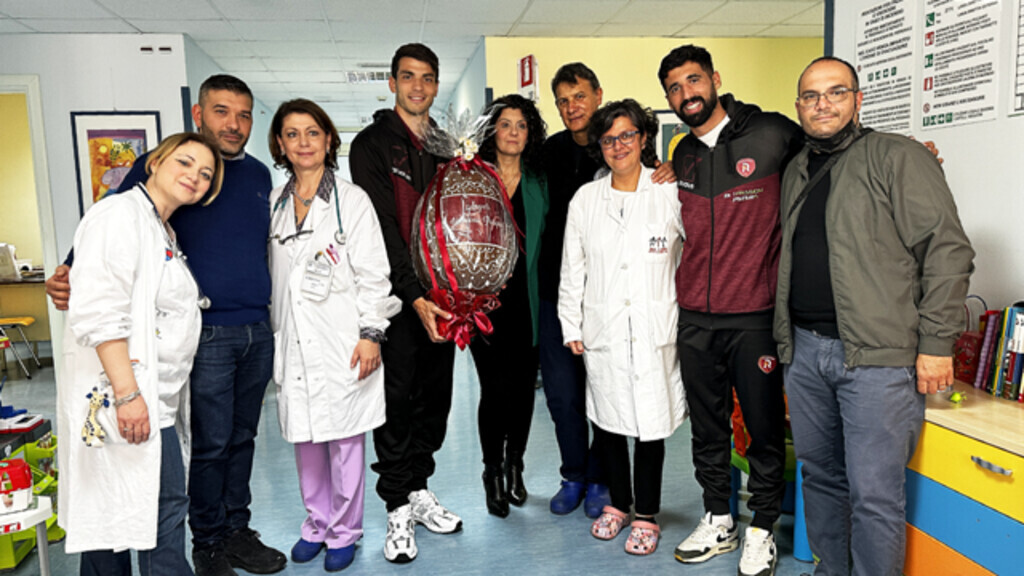 In occasione delle imminenti festività pasquali, infatti, i giocatori Domenico Girasole e Antonio Porcino, accompagnati dal Presidente, Virgilio Minniti, e dalla responsabile marketing, Consuelo Apa, hanno trascorso alcuni momenti con i giovani pazienti, consegnando loro un uovo di cioccolato gigante e regalando così un inaspettato quanto emozionante momento di gioia a degenti e personale del reparto.