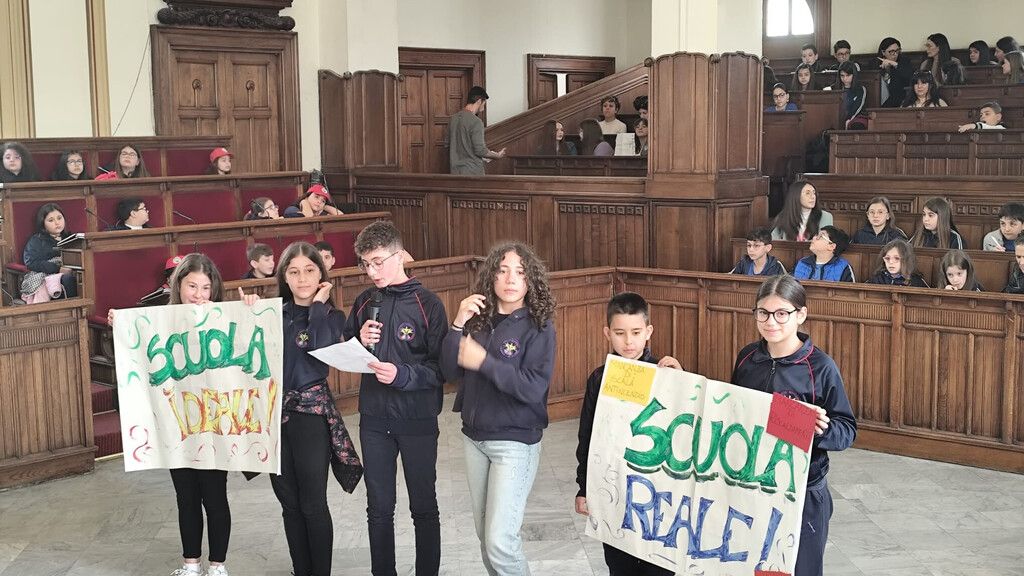 Centinaia di studentesse e studenti si sono ritrovati questa mattina a Palazzo San Giorgio nell’ambito del progetto “Fuori classe in movimento” di Save The Children Italia. L’iniziativa ha coinvolto gli allievi degli istituti comprensivi “Moscato” di Gallina, “San Sperato – Cardeto”, “Catanoso – De Gasperi” e “Campanella” di Gioia Tauro. Accompagnati dagli insegnanti, ragazzi e ragazze hanno fatto visita al Palazzo sede del Comune di Reggio Calabria, soffermandosi all’interno dell’aula consiliare “Battaglia”, dove sono stati accolti dai vertici dell’Amministrazione comunale.
