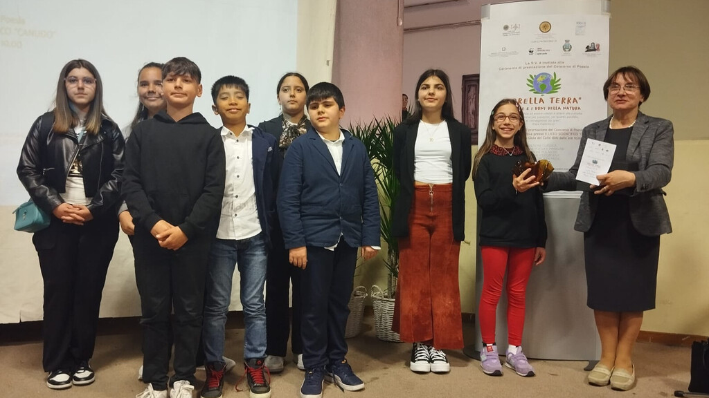 A ritirare il premio, la classe V A della scuola primaria "G.Pascoli" e l'Insegnante Francesca Zimbalatti in rappresentanza del Dirigente Scolastico, Avv. Lucia Zavettieri. Le poesie degli alunni hanno rappresentato l'importanza della cura per la natura e l'esigenza di una concreta tutela da parte dei governi.