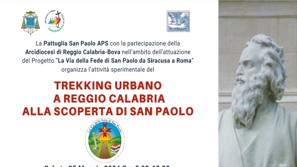 Paolo da Siracusa a Roma e il Trekking urbano a Reggio Calabria alla scoperta dell’Apostolo delle Genti”, l’Associazione Pattuglia San Paolo APS (costituita da adulti scout appartenenti a varie realtà reggine), in collaborazione con l’Arcidiocesi di Reggio Calabria – Bova, ha organizzato, per il prossimo sabato 25 maggio, un’esperienza di trekking cittadino per ripercorrere insieme i luoghi che costituiscono "memoria" del Santo.