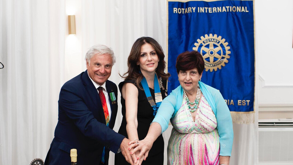 Cosimo Sframeli passa il collare e il testimone a Caterina Festa, recente Presidente e leader del Rotary club Reggio Calabria Est - A.R. 2024/2025.