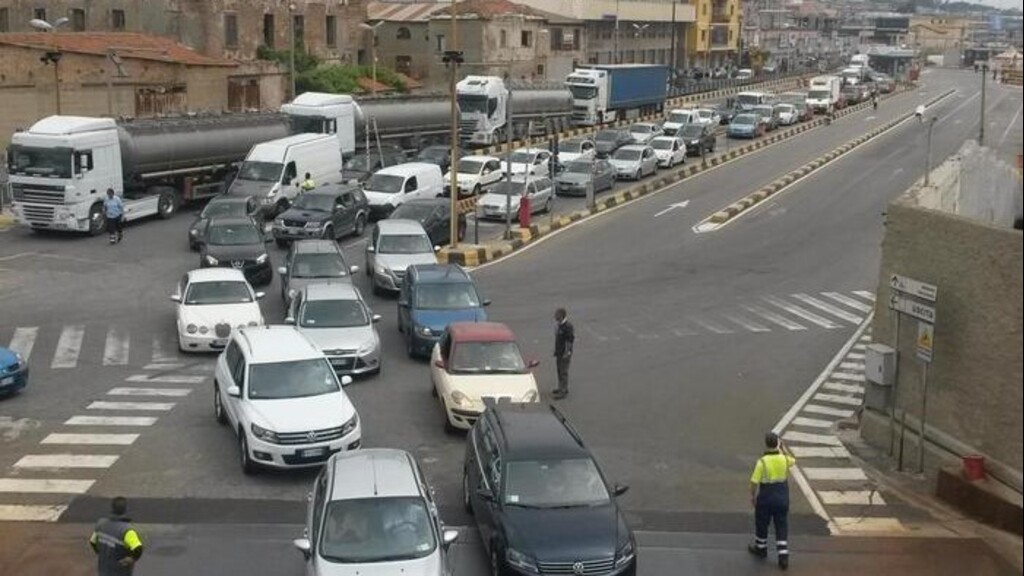 E' di circa tre ore il tempo di attesa per imbarcarsi per la Sicilia agli imbarcaderi di Villa San Giovanni, nella giornata da bollino nero per il grande esodo in vista del Ferragosto.