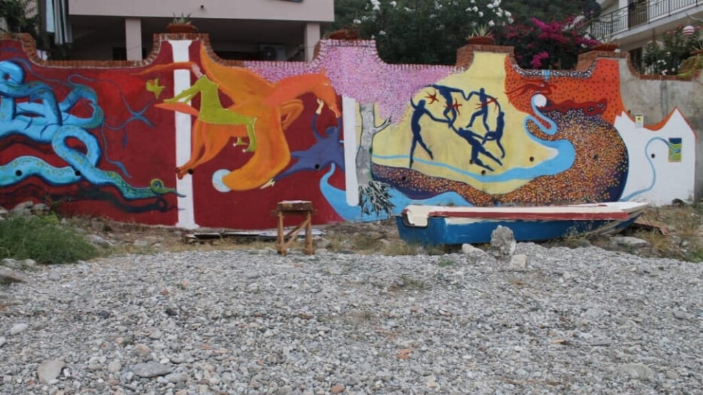Andrea Mirarchi, 22 anni, studente dell’Accademia di Brera a Milano, nato a Milano da genitori calabresi, non si è rassegnato a trascorrere le vacanze in una Favazzina assalita da turisti e, nel tempo, stravolta da trasformazioni edilizie e paesaggistiche spesso selvagge. Da artista ha colto tutto il fascino e la forza identitaria di un luogo che guarda Scilla e Cariddi. Per raccontarlo ha scelto un muro di recinzione di confine tra il mare e la terra, trasformandolo in un racconto capace di evocare mito e memoria nascosti e invisibili nella profondità geologiche e storiche dello Stretto omerico.