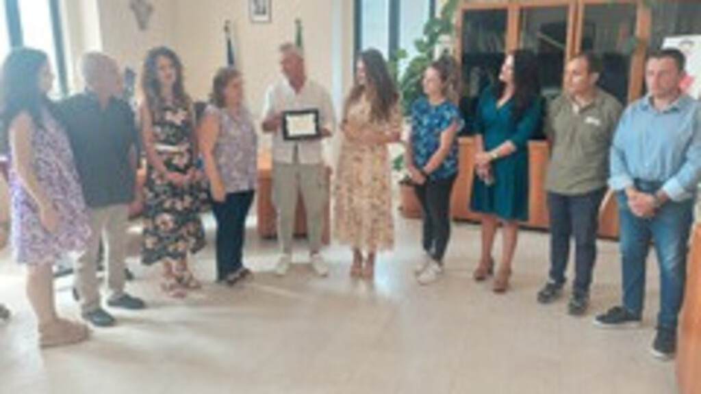 Il sindaco Biasi e l’assessore Monteleone consegnano una targa che premia attaccamento ed esempio di collaborazione del personale