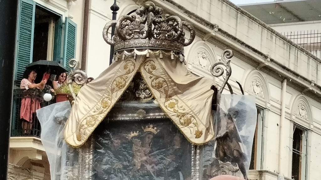 È una giornata piovosa a Reggio Calabria ma il maltempo non ferma la Processione della Sacra Effigie, con la città stretta intorno alla propria Patrona.
