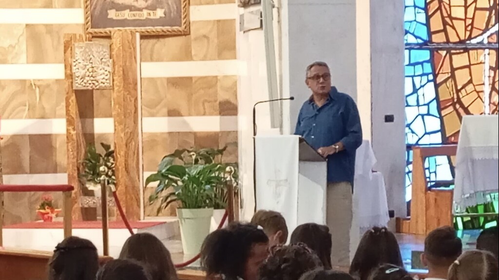 “Vi svelo un segreto – ha detto Marziale, rivolgendosi ai piccolini – dovete immaginare la scuola come un grande gioco, il più bello. Voi giocherete ad imparare a scrivere, a leggere, a stare insieme ed anche i vostri maestri faranno la stessa cosa, ossia giocheranno a formarvi, in comunione con i genitori ai quali è demandato il compito di educarvi”.