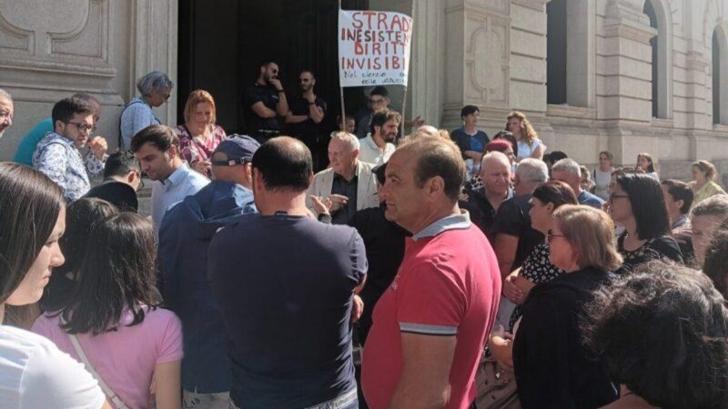 Sono circa un centinaio i presenti in Piazza con il cartello "Strade inesistenti, diritti invisibili". Un messaggio forte e chiaro lanciato all'Amministrazione Comunale.