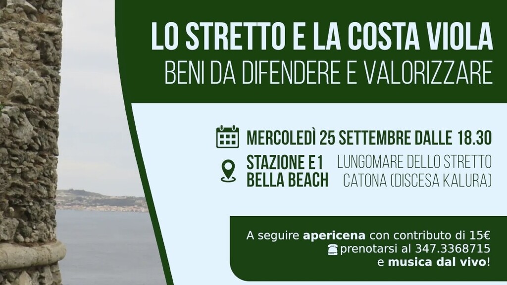 “Un altro tema di grande rilevanza sarà la proposta di riconoscimento dello Stretto come Patrimonio Mondiale dell’Umanità UNESCO, insieme al progetto del Parco Nazionale dello Stretto e della Costa Viola. Tali iniziative, oltre a rafforzare la tutela dell’area, costituiranno strumenti fondamentali per affrontare le sfide ecologiche e climatiche che il nostro territorio si trova già ad affrontare. Al termine degli interventi, il pubblico avrà la possibilità di partecipare a un dibattito aperto. La serata si concluderà con un apericena e musica dal vivo, con esibizioni di artisti locali. Aderiscono: WWF, Legambiente, Italia Nostra, Società dei Territorialisti e delle Territorialiste, C.S. Nuvola Rossa, Ecolandia, Scilla Diving Center, GAL Area Grecanica, Laboratorio Territoriale Condofuri/San Lorenzo, Gruppo Archeologico Vallata Amendolea, Osservatorio Oasi “Pantano” di Saline Joniche”, conclude il Comitato NO PONTE Calabria.