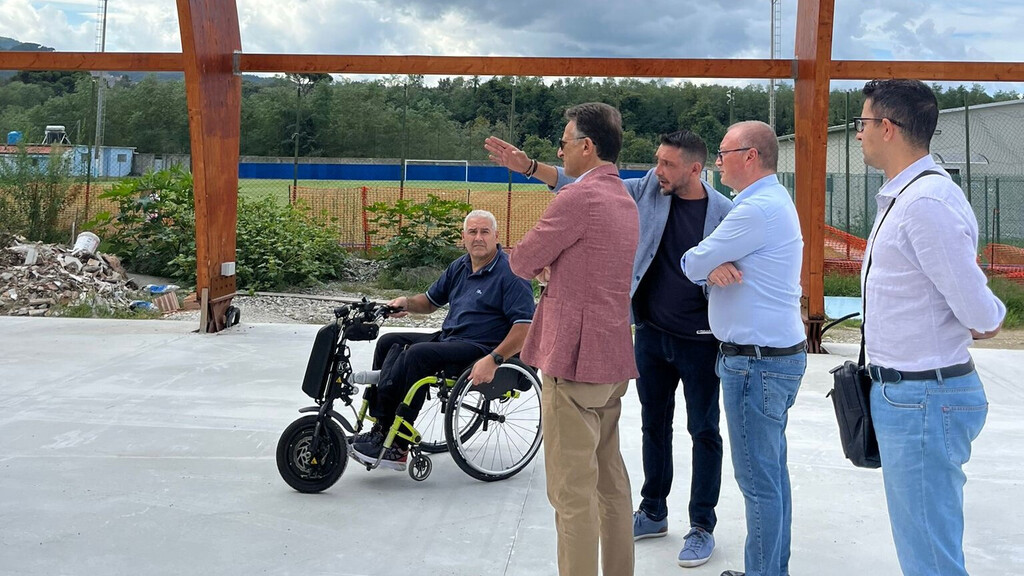 Entro poche settimane saranno completati i lavori del “Palloncino”, dei campi di calcio e di tennis in fase di realizzazione sul territorio di Cinquefrondi. E’ l’assicurazione che il vicesindaco metropolitano, Carmelo Versace, ha ricevuto dalla ditta responsabile del cantiere sul quale, proprio nei giorni scorsi, Versace ha effettuato un sopralluogo insieme al consigliere delegato e sindaco di Cinquefrondi, Michele Conia, al dirigente di settore, Giuseppe Mezzatesta, ed ai tecnici del Comune pianigiano. La ditta guidata da Tiziano Scali, infatti, è certa che per la fine del mese sarà montato il telo di copertura della tensostruttura.