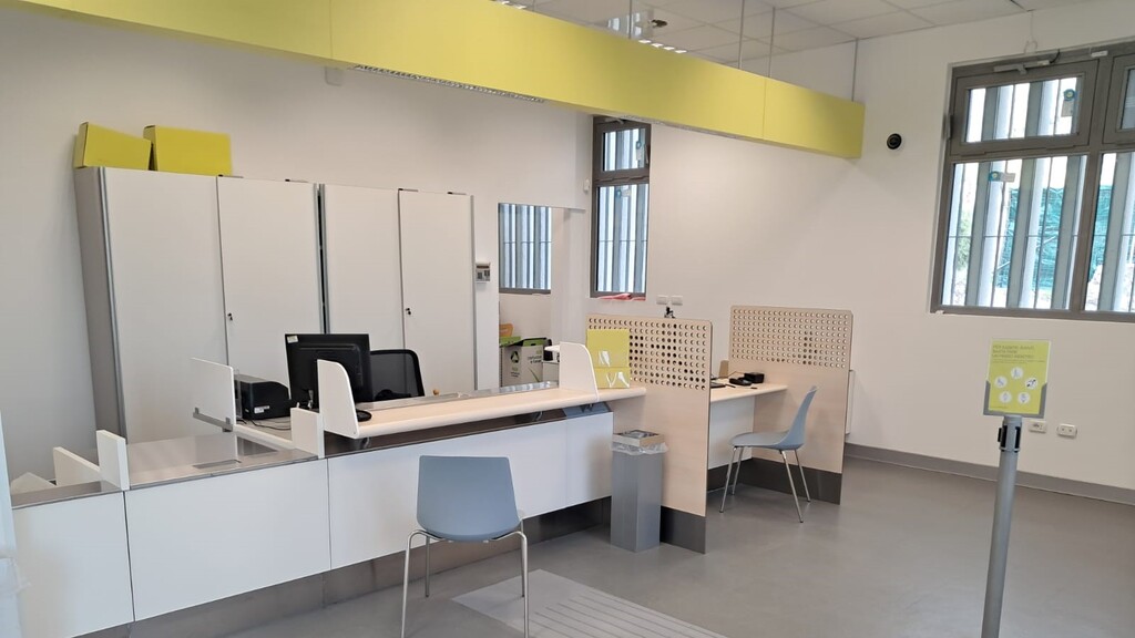 Nell’ambito degli interventi, si è proceduto a una completa riorganizzazione degli spazi finalizzata a ottimizzare la fruizione dell’ufficio con particolare attenzione al miglioramento del confort ambientale e alla facilitazione dell’accesso ai servizi. In quest’ottica, tra le altre opere, si inseriscono la nuova configurazione della linea di sportelleria, con altezze ribassate per agevolare tutti i segmenti di clientela e postazione di lavoro ergonomica per favorire una corretta postura.