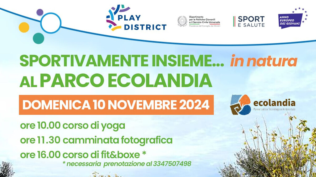 Ha preso il via a pieno ritmo il Progetto “Sportivamente Insieme”, promosso a Reggio Calabria nell’ambito dell’iniziativa nazionale “Spazi Civici di Comunità-Play District”. Dopo l’open day, la conferenza stampa di presentazione e l’avvio delle attività sportive, è tutto pronto per un nuovo appuntamento in programma domenica 10 novembre 2024. Sarà il meraviglioso scenario del Parco Ecolandia di Arghillà la location di “Sportivamente Insieme…in natura” con tre eventi gratuiti inseriti in un unico grande evento. Si partirà alle ore 10.00 con il Corso di Yoga all’aria aperta per percepire l’abbraccio della natura, ascoltare il respiro della Terra e riconnettere ad essa il proprio io più profondo.