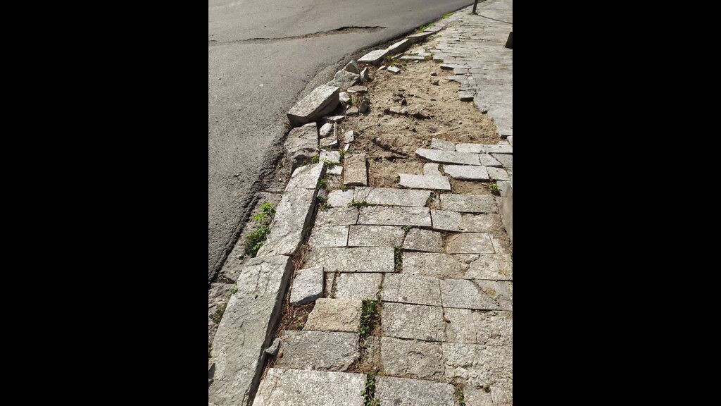 Da quanto dimostrato anche dalle foto allegate, il marciapiede é in condizioni disastrate oltre che un pericolo pubblico per tutta la cittadinanza.