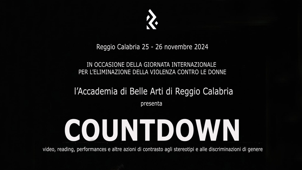 In occasione della Giornata internazionale per l'eliminazione della violenza contro le donne, l’Accademia di Belle Arti di Reggio Calabria promuove una due giorni di eventi, incontri, filmati, proiezioni, reading, performances e altre azioni di contrasto agli stereotipi e alle discriminazioni di genere, che si apre con la presentazione del video Countdown realizzato da studentesse e studenti su richiesta del MUR Ministero dell’Università e della Ricerca sul tema della violenza contro le donne. L’iniziativa, ideata dall’antropologa Patrizia Giancotti docente in Accademia, sostenuta dal Direttore Piero Sacchetti, realizzata grazie alla collaborazione dei professori Davide Negro, Marcello Francolini, Domenico Michele Surace, Dario Condemi, del performer Dario Zema, delle studentesse e degli studenti delle scuole di Comunicazione e didattica dell’arte, Cinematografia e tecnologia per il cinema, Nuove tecnologie dell’arte, Pittura, vuole trattare il dramma del femminicidio e il problema sociale della violenza fisica e psicologica sulle donne attraverso la pluralità dei linguaggi dell’arte.