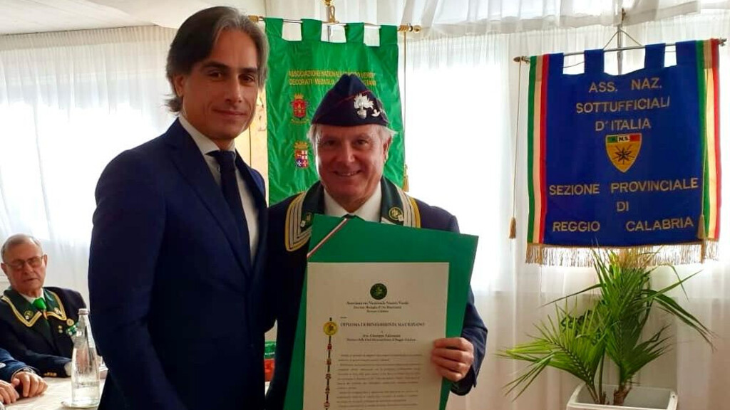 Falcomatà insignito del Diploma di benemerenza "Mauriziano" consegnato dall’associazione nazionale "Nastro verde"