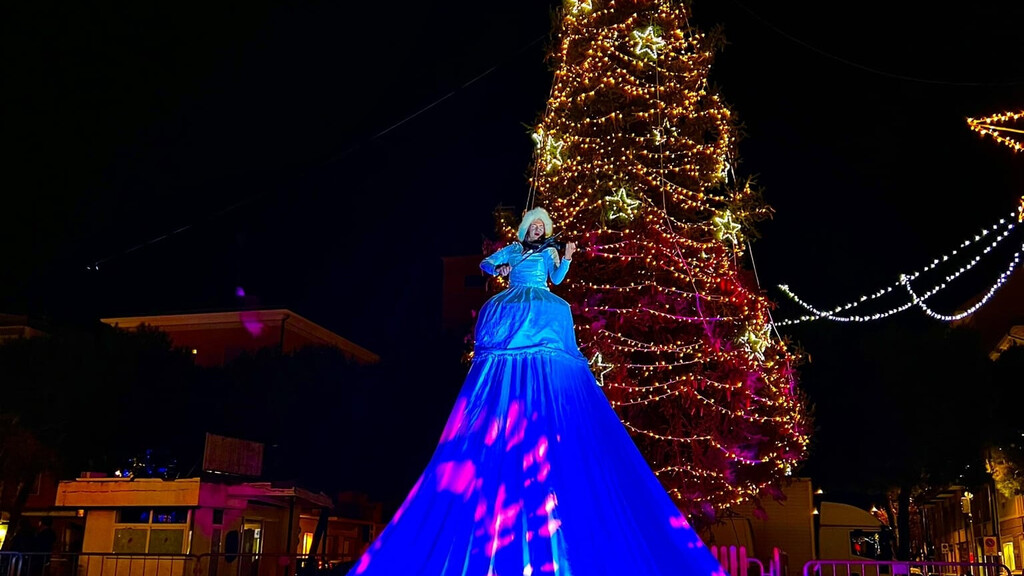 Tutti gli spettacoli saranno gratuiti con inizio alle 20.00 e fine alle 24.00. Entrambe le serate saranno aperte dalla Merry Christmas Parade, che trasporterà il pubblico nel fiabesco mondo del Natale con Babbo Natale in sella ad una bicicletta luminosa accompagnato da un angioletto dispettoso e al seguito un gigante Pupazzo di neve, il Soldatino di Stagno e lAlbero di Natale, tra melodie natalizie e ritmi funk. Tra lo stupore del pubblico, nell'incanto della notte stellata d'inverno, The Big Violinist, sospesa a 5 metri di altezza, suonerà il violino dal vivo in un vastissimo ed emozionante repertorio che spazia dalla musica pop al jazz, dalla classica alla lounge music.