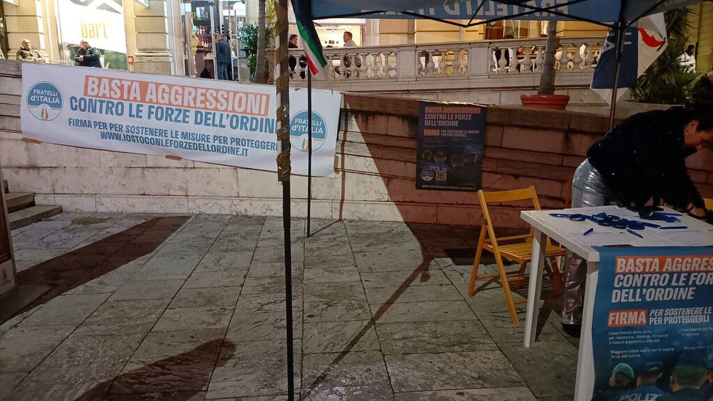 Così come in tutta Italia, anche a Reggio Calabria l'iniziativa voluta da Fratelli d'Italia, ha registrato una massiccia partecipazione con l'apposizione di centinaia di firme in poche ore. Il gazebo organizzato ieri pomeriggio dal Coordinamento cittadino è stato preso d'assalto dai reggini che hanno voluto così dimostrare, come l'affetto verso le Forze dell'ordine sia un sentimento diffuso e condiviso.