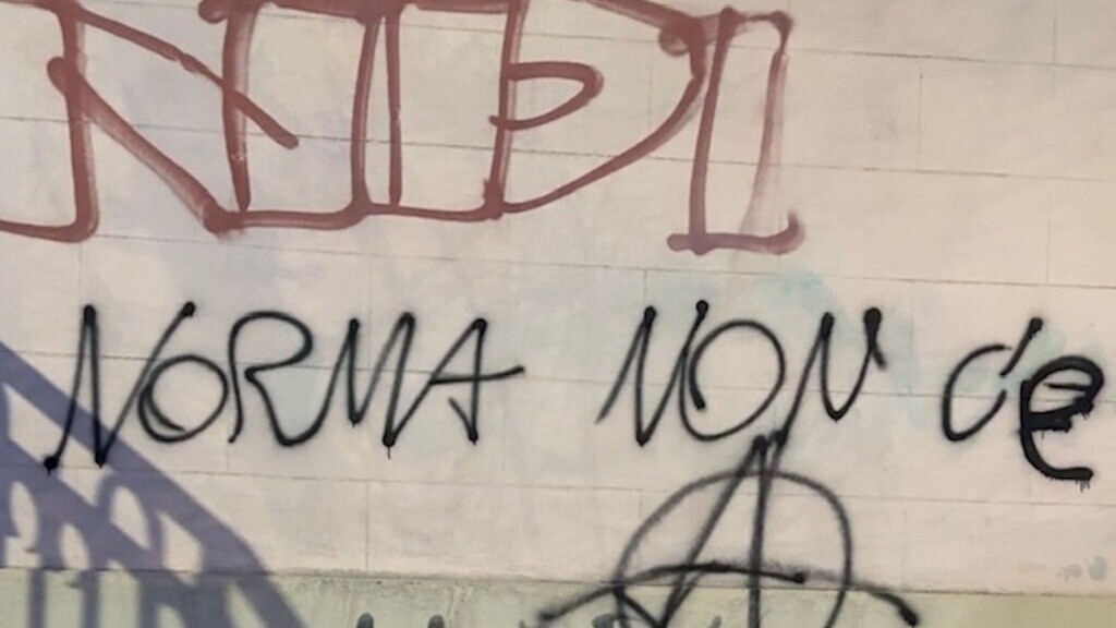 Questa volta, non si sono limitati ad imbrattare la targa, confinata in un angolino coperto dal muro e dalla scalinata, ma l'hanno totalmente demolita e, sarcasticamente, hanno ricalcato con vernice la scritta "Norma non c'è".