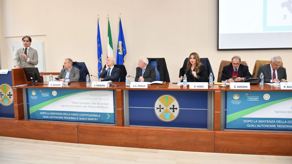 Il sindaco metropolitano di Reggio Calabria, Giuseppe Falcomatà, è intervenuto al convegno dal titolo "Dopo la sentenza della Corte Costituzionale, quali autonomie regionali e quale sanità?", promosso, presso la sala “Monteleone” di Palazzo Campanella, dal Coordinamento Calabria dell’Associazione ex parlamentari della Repubblica, dall’Associazione degli ex consiglieri regionali della Calabria e col patrocinio dell’Università “Mediterranea”.