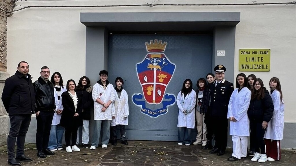 Nell’ambito dei lavori di ammodernamento della sede della Compagnia Carabinieri di Taurianova, intitolatala in memoria dell’Appuntato Medaglia d’Oro al Valor Militare Vincenzo Caruso, non poteva mancare un tocco artistico. Una classe del Polo Liceale Guerrisi - Gerace di Cittanova ha infatti omaggiato gli uomini e le donne dell’Arma realizzando una riproduzione dello scudo araldico.