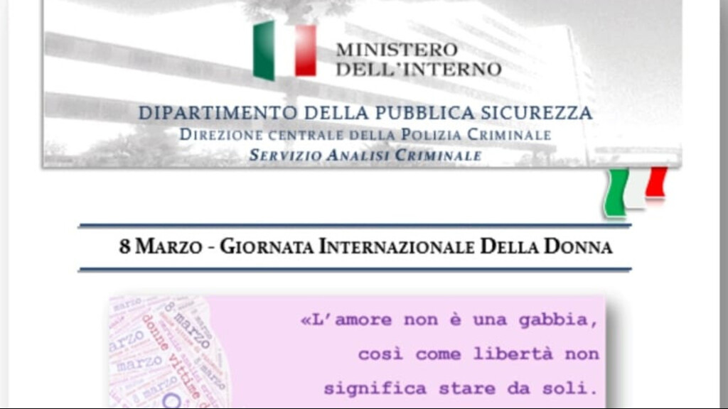 Oggi, presso la Direzione Centrale Polizia Criminale, ufficio interforze del Dipartimento della Pubblica Sicurezza, è stato presentato il report di analisi “8 Marzo–Giornata internazionale della donna”, elaborato dal Servizio Analisi Criminale, che esamina, attraverso l’elaborazione degli elementi acquisiti dalla Banca dati delle Forze di polizia, la tematica della violenza di genere e della relativa azione di contrasto.