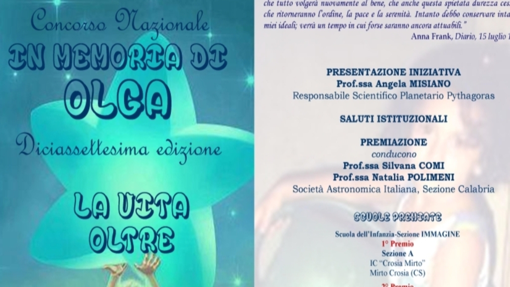 Il concorso, fortemente, voluto dalla Città Metropolitana di Reggio Calabria fin dal maggio 2008, per ricordare la bambina reggina, Olga Panuccio, tragicamente scomparsa assieme ai genitori, è inserito nel Protocollo d'Intesa tra il Ministero dell'Istruzione e del Merito - Direzione generale per gli ordinamenti scolastici, la formazione del personale scolastico e la valutazione del sistema nazionale di istruzione, e la Società Astronomica Italiana.
