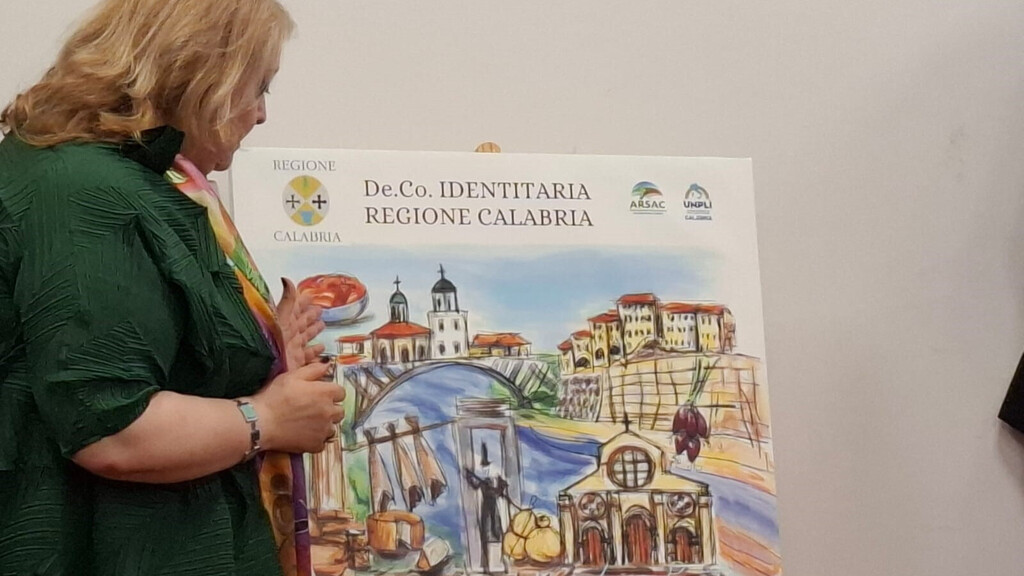 “Il logo delle De.CO identitarie che ho creato – ha raccontato la designer Granata –, commissionato dall’Unpli Calabria, con il patrocinio della Regione, è un marchio riconoscibile che parla delle cinque province calabresi. I soggetti sono stati scelti ad estrazione perché altrimenti sarebbe stato impossibile decidere, perché la nostra regione è ricchissima. Per la provincia di Catanzaro è stato scelto il ponte Morandi, una veduta del centro storico e il morzello; per la provincia di Cosenza il duomo, il caciocavallo silano; per la provincia di Crotone è stata estratta la colonna di Capocolonna, il pecorino e la ricotta di pecora; per la provincia di Vibo Valentia la rupe e la cipolla di Tropea; per la provincia di Reggio Calabria l’Arena che si affaccia sullo Stretto e lo stocco. Il logo mi è stato commissionato dall’Unpli Calabria, con il patrocinio della Regione”.