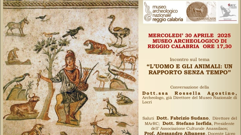 “L’uomo e gli animali: un rapporto senza tempo” è il tema della conversazione che la Dott.ssa Rossella Agostino, Archeologo e già Direttore del Museo Nazionale di Locri, terrà mercoledì 30 aprile alle ore 17,30 presso la Sala del Museo Archeologico Nazionale di Reggio Calabria, nell’ambito degli incontri promossi congiuntamente dallo stesso Museo Archeologico e dall’Associazione Culturale Anassilaos con l’adesione e la partecipazione della Sezione Ibico Reggio Calabria dell’Associazione Italiana di Cultura Classica (AICC) nel contesto della “Percezione dell’Antico”, che da qualche anno caratterizza la ricerca del Sodalizio reggino.