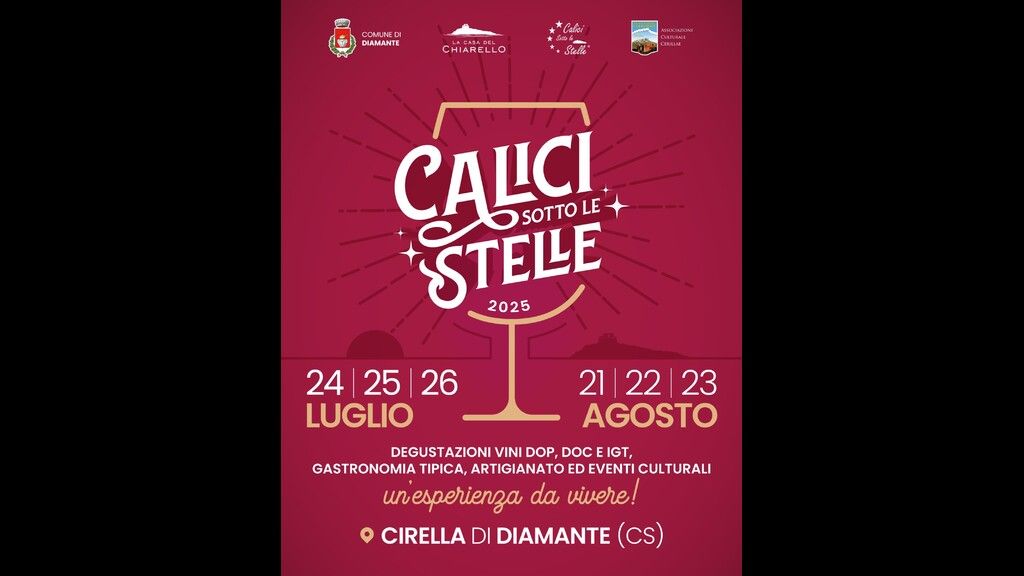 Durante le serate del 24, 25 e 26 luglio e del 21, 22 e 23 agosto 2025, protagonisti saranno ancora una volta i migliori vini a denominazione DOP, DOC e IGT, accompagnati da un’area food dedicata alle eccellenze gastronomiche della Calabria, spettacoli e degustazioni culturali.