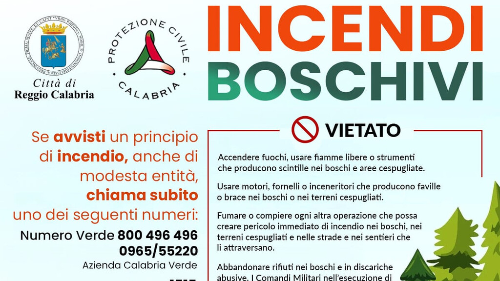 In seguito alla nota con la quale il 16 giugno scorso il Ministro per la Protezione Civile e le Politiche del mare ha indicato che il periodo di grave pericolosità per gli incendi boschivi decorre a far data dal 15 giugno e sino a tutto il 15 ottobre dell’anno 2025, il sindaco Giuseppe Falcomatà ha revocato la precedente Ordinanza del 3 giugno – il cui termine di validità era stato fissato all’usuale data del 30 settembre – disponendo la riapprovazione delle “Comunicazioni alla popolazione per la prevenzione e lotta contro gli incendi boschivi e di interfaccia per l’anno 2025” indicate di seguito a salvaguardia delle zone a rischio incendio sul territorio.