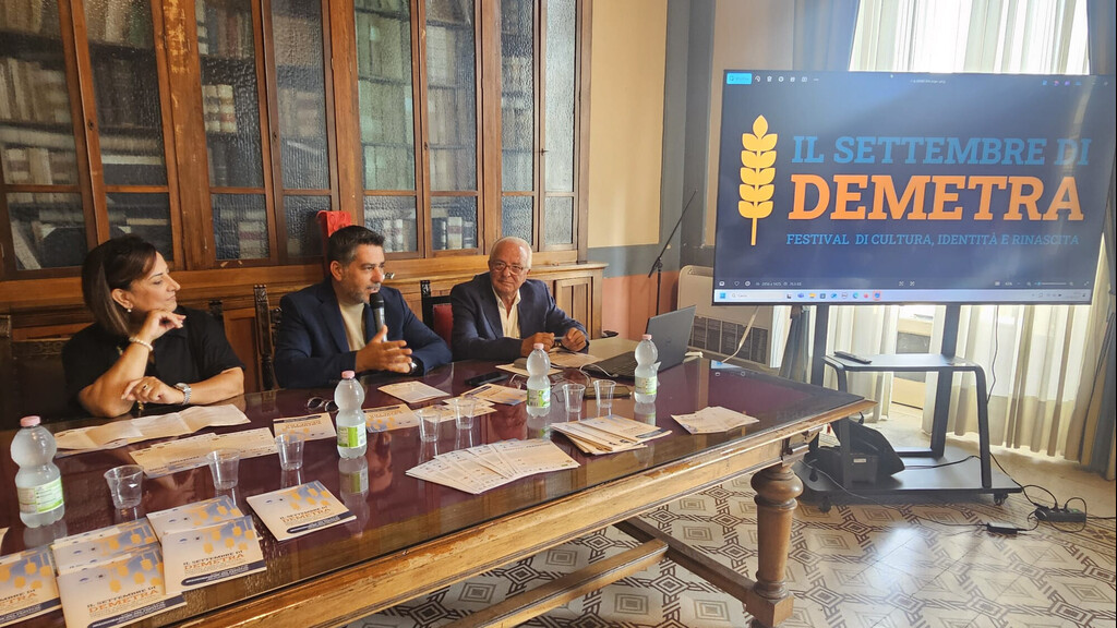 Salvatore Timpano Presidente A.I.Par.C. Nazionale ETS che ha presentato l'evento promosso con il patrocinio e il partenariato del Comune di Reggio Calabria, nel mese di settembre, stagione simbolica di rinascita e fertilità, profondamente legata alla tradizione e all'identità profonda di Reggio Calabria, prende vita la prima edizione di un progetto culturale originale ispirato alla figura mitologica di Demetra, emblema del ciclo vitale e della rigenerazione. Illustrando sommariamente il programma che, dall'1 al 7 settembre, prevede incontri culturali, musica e momenti di riflessione. L'inaugurazione è prevista lunedì 1 settembre, alle 17.30 nel salone dei Lampadari di palazzo San Giorgio con un intervento musicale del Conservatorio F. Cilea, seguito dalla lectio magistralis dello storico Giuseppe Caridi sulla Calabria dai Normanni ai Savoia e dall’incontro “Scirubetta: dialoghi sul gelato, esperienze di gusto” a cura di Angelo Musolino, Presidente Conpait. Martedì 2 settembre, ore 17:30 Sala dei Lampadari Italo Falcomatà “Reggio Calabria, il Mezzogiorno e la Rivoluzione Nazionale (2 settembre 1847 - 21 ottobre 1860)”.