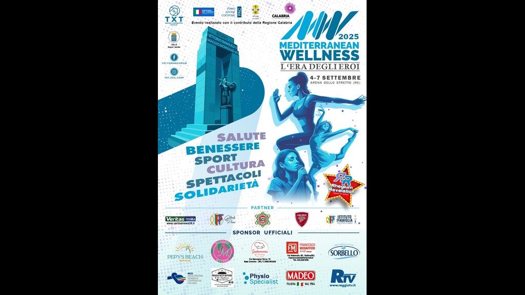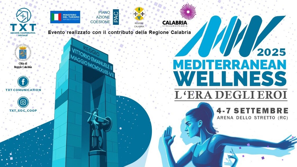 Mancano pochissimi giorni all’inizio della XIII edizione di “Mediterranean Wellness – L’Era degli Eroi”, evento ormai simbolo della città di Reggio Calabria e tra i più attesi appuntamenti culturali e sportivi dell’estate. La manifestazione è organizzata dalla TXT Società Cooperativa Sociale, afferente al Sistema A.C.U. (Azione Cristiana Umanitaria) e fondata dal missionario cristiano Gilberto Perri, con il contributo della Regione Calabria nell’ambito del PAC Calabria 2014-2020 – Fondo Unico Nazionale Turismo (FUNT). L’evento rientra nel Programma Estate Reggina 2025 promosso dal Comune di Reggio Calabria ed è inserito nel cartellone ufficiale di “Calabria Straordinaria”, brand della Regione Calabria dedicato alla promozione turistica. La XIII edizione sarà presentata ufficialmente mercoledì 3 settembre 2025 alle ore 11.00 presso la Sala dei Lampadari di Palazzo San Giorgio, sede istituzionale del Comune di Reggio Calabria.