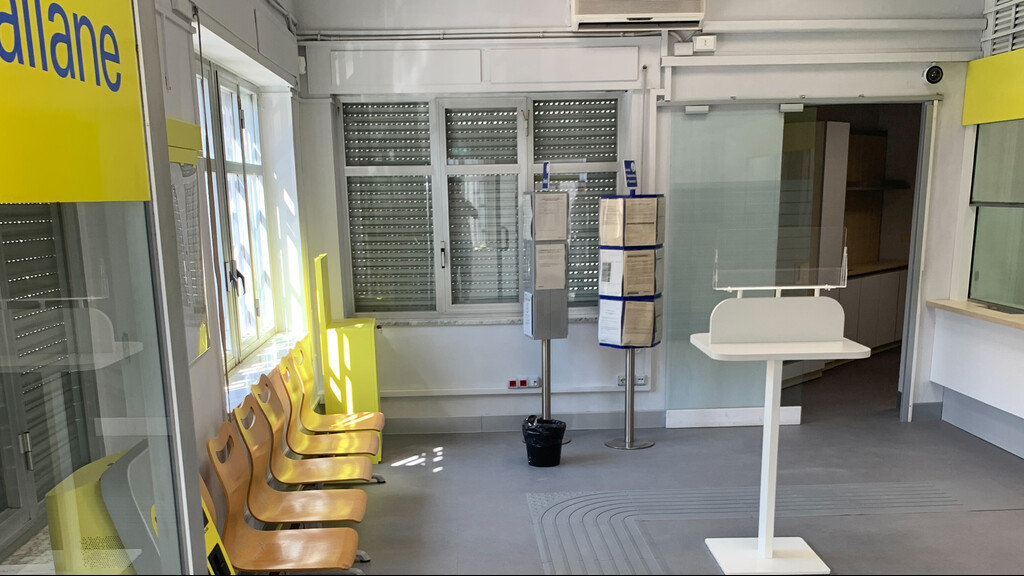 Nell’ambito degli interventi, si è proceduto a una completa riorganizzazione degli spazi finalizzata a ottimizzare la fruizione dell’ufficio con particolare attenzione al miglioramento del confort ambientale e alla facilitazione dell’accesso ai servizi. In quest’ottica, tra le altre opere, si inseriscono la nuova configurazione della linea di sportelleria, con altezze ribassate per agevolare tutti i segmenti di clientela e postazione di lavoro ergonomica per favorire una corretta postura.