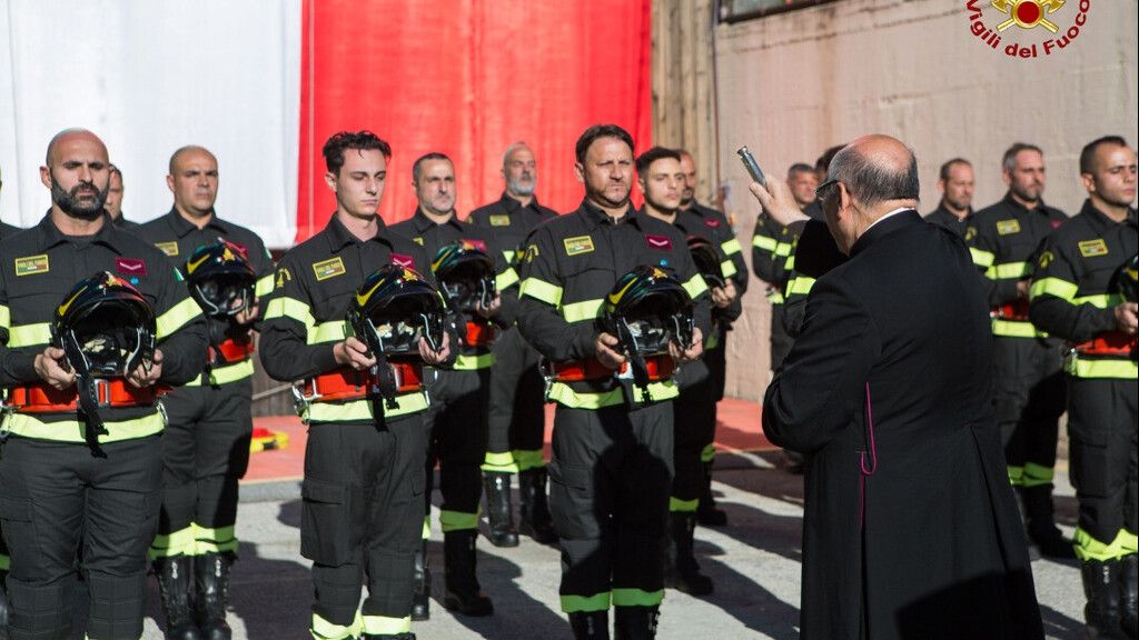 La cerimonia è stata preceduta da un momento che i Vigili del Fuoco del 100° corso hanno vissuto unitamente ai propri familiari, alla presenza del Direttore Regionale: la benedizione degli elmi, impartita da Mons. Tommaso Buccafurni, Vicario Generale della Diocesi di Lamezia Terme, cui ha fatto seguito il momento del “cambio distintivo”. Un familiare per ciascun Vigile del Fuoco, ha raggiunto il proprio congiunto nello schieramento ed ha provveduto a rimuovere dall’uniforme di servizio il distintivo riportante la qualifica di “Vigile del Fuoco in Prova” per posizionare al suo posto la qualifica di “Vigile del Fuoco”, vivendo un momento ricco di emozioni.