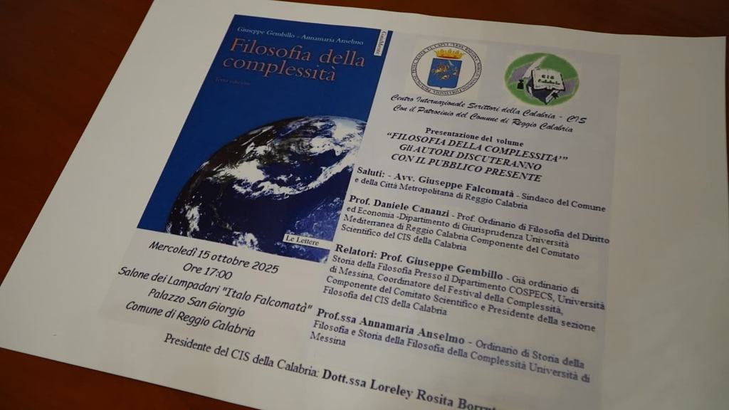 Della terza edizione del volume “Filosofia della complessità” si è discusso nella sala dei Lampadari “Italo Falcomatà” di palazzo San Giorgio, nel corso di un incontro organizzato dal Centro internazionale scrittori della Calabria a cui ha partecipato il sindaco di Reggio Calabria, Giuseppe Falcomatà.