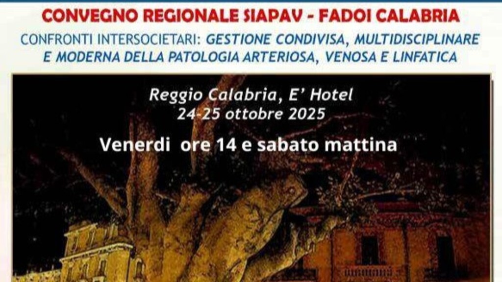 Reggio Calabria, ospiterà giorno 24 e 25 Ottobre 2025 un evento scientifico congiunto SIAPAV - FADOI  che vedrà la Calabria unita intorno a temi che si interfacciano ogni giorno con la salute pubblica.  L’evento si svolgerà presso l’E’ Hotel di Reggio Calabria ed inizierà giorno 24 alle ore 14.