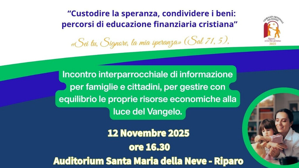 L’incontro nasce dal desiderio di offrire un momento di riflessione e confronto sulle sfide economiche che molte famiglie vivono oggi, proponendo un cammino di consapevolezza e solidarietà ispirato al Vangelo. L’iniziativa si colloca, inoltre, nel contesto della Giornata Mondiale dei Poveri, che la Chiesa celebrerà domenica 16 novembre, offrendo così un’occasione concreta per rinnovare l’impegno comunitario verso la giustizia, la condivisione e la cura delle fragilità.