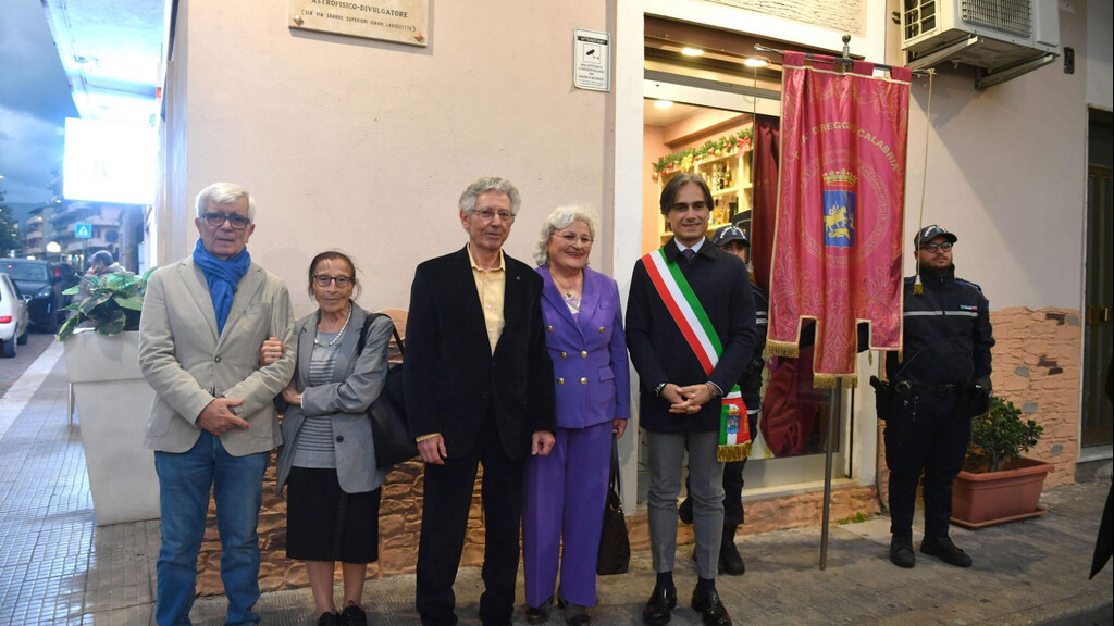 Alla presenza dei familiari, del presidente della Commissione toponomastica Domenico Cappellano, della direttrice del Planetario Pythagoras Angela Misiano e del Sindaco Giuseppe Falcomatà è stata scoperta la targa del celebre scienziato.