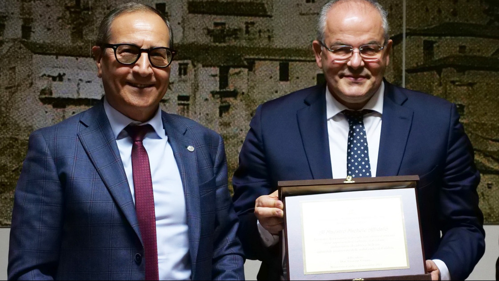 Si è svolta sabato scorso, nella cornice della Sala Consiliare del Comune di Monterosso Calabro (VV), la XVI^ edizione della Festa dell”, presieduta dal Dott. Giuseppe Crispino. Un appuntamento che da sedici anni rappresenta uno dei momenti pi’intero territorio, nato per valorizzare storie, talenti e testimonianze capaci di esprimere la parte più autentica, creativa e luminosa della Calabria. L’accoglienza, tema cardine della manifestazione, è intesa non solo come gesto ospitale, ma come scelta culturale e sociale: un invito a riconoscere il valore dell'altro, a custodirne la storia e a costruire legami che arricchiscono la comunitò che rappresenta un patrimonio di identità e appartenenza; riconoscere chi, attraverso il proprio lavoro, contribuisce a dare prestigio alla Calabria a livello nazionale e internazionale. Ospite dellè stato il maestro orafo Michele Affidato, figura di straordinario rilievo nel panorama dell’arte sacra. La sua carriera è caratterizzata da un impegno costante non solo per la creazione di particolari gioielli, un connubio tra antico e moderno, che guarda al passato ed al presente tra arte, tradizione e modernità, ma anche per la realizzazione di opere per prestigiose manifestazioni apprezzate a livello nazionale e internazionale. Ha realizzato opere per premi Nobel, per personalità di primo piano della cultura, del giornalismo, dello sport, dello spettacolo, del cinema e della musica. Da tempo, inoltre, Affidato firma i premi speciali per il Festival di Sanremo.