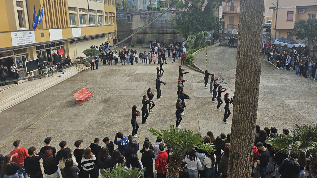 In occasione della Giornata Internazionale contro la violenza sulle donne, l’Istituto di Istruzione Superiore “Einaudi – Alvaro” di Palmi ha organizzato, il 25 novembre, una serie di attività dedicate alla sensibilizzazione e al contrasto di ogni forma di violenza di genere. L’iniziativa si è svolta a partire dalle ore 9:30 nel cortile del plesso della sede Liceo e ha coinvolto studenti, docenti e personale scolastico in un percorso condiviso di riflessione, espressione e partecipazione attiva.