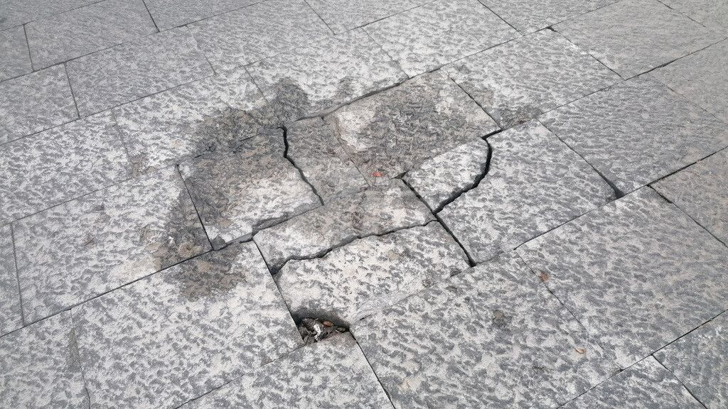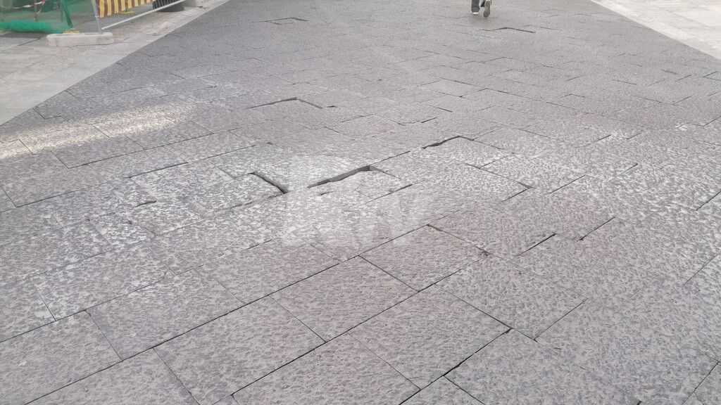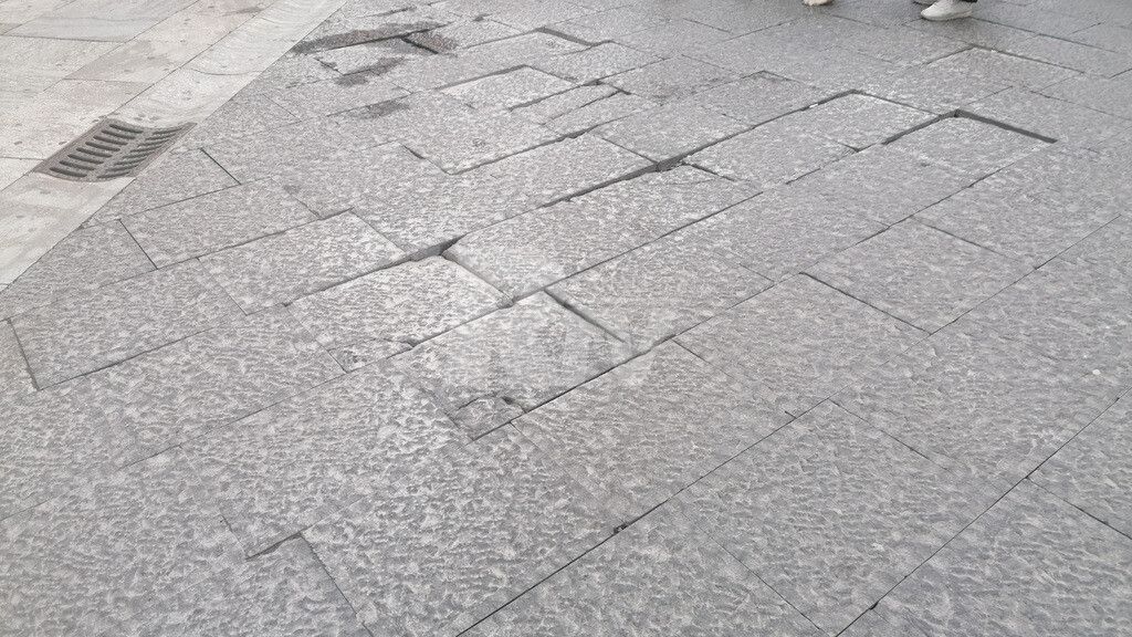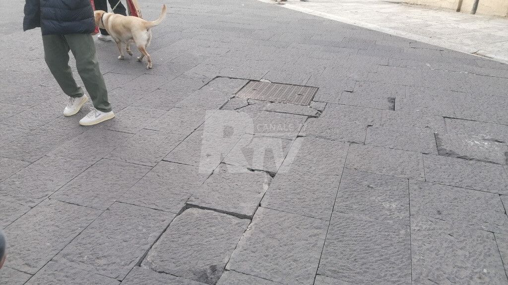 Uno dei punti più problematici si trova paradossalmente davanti la sede della Questura. Qui la pavimentazione risulta particolarmente irregolare e usurata, con lastre che sporgono pericolosamente. Una zona che dovrebbe essere simbolo di decoro e sicurezza cittadina offre invece uno spettacolo di degrado e incuria.