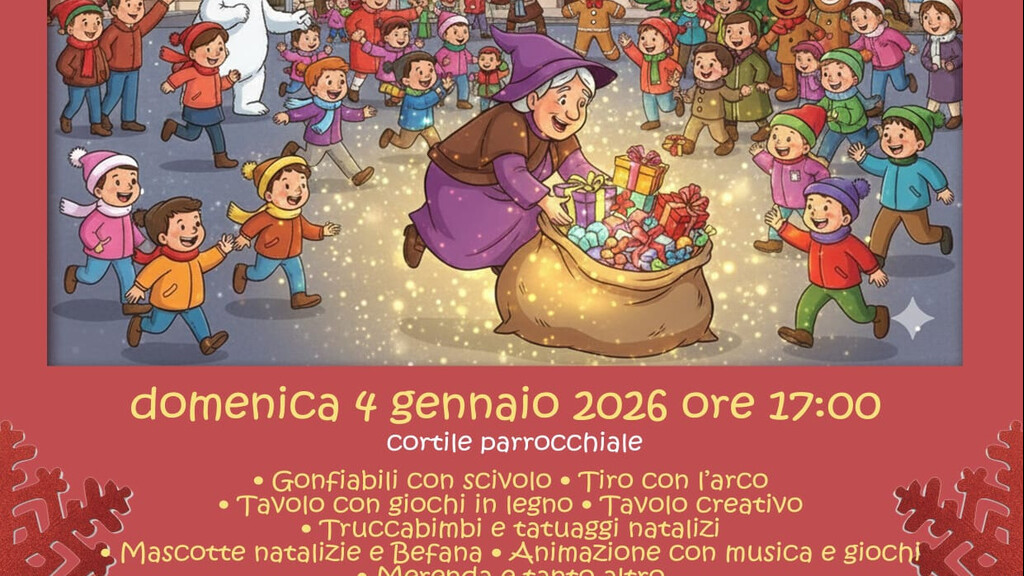 La Parrocchia dei SS. Giovanni Nepomuceno e Filippo Neri in Arangea organizza l’evento “Portatori di Gioia 2026”, una serata dedicata all’animazione e al divertimento in attesa della Befana.