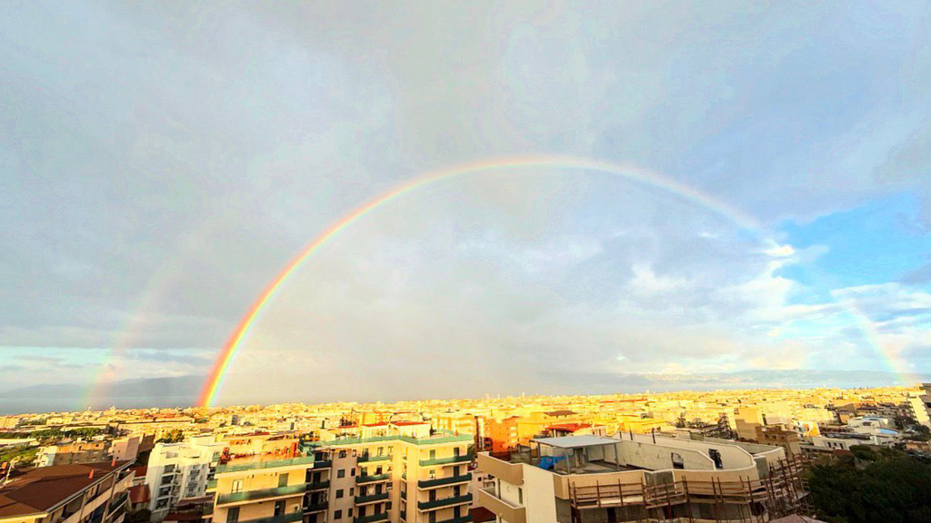 Dopo la devastazione degli ultimi giorni, oggi il cielo ha regalato a Reggio Calabria un’immagine che va oltre la semplice bellezza naturale: un arcobaleno, apparso quasi in silenzio, mentre le ferite lasciate dagli eventi recenti sono ancora ben visibili sul territorio e negli occhi delle persone.