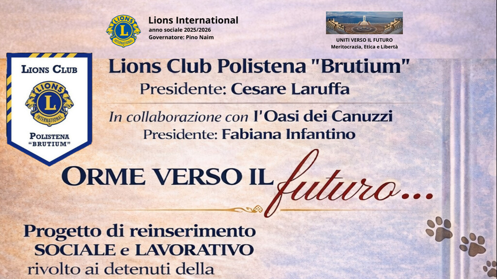 «Con “Orme verso il Futuro” vogliamo costruire un ponte concreto tra il tempo della pena e il ritorno nella società – dichiarano congiuntamente Cesare Laruffa, Presidente del Lions Club Polistena Brutium, e Fabiana Infantino, Responsabile del Comitato Service del Club e Presidente dell’Oasi dei Canuzzi – Crediamo che ogni persona, anche dopo aver commesso errori, possa ritrovare un cammino di crescita e rinascita. La relazione con il cane, basata sulla fiducia e sull’assenza di giudizio, diventa uno strumento educativo potente, capace di generare consapevolezza, dignità e competenze professionali».