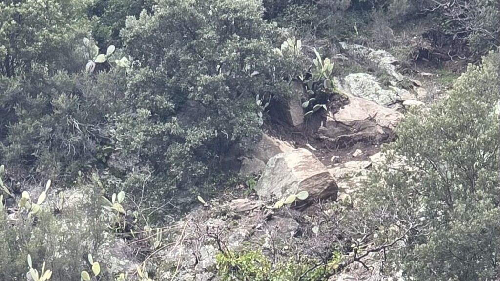 Nel corso del sopralluogo è stato riscontrato un distacco di materiale roccioso attualmente fermo su un punto del costone, con concreto rischio di ulteriore caduta sulla sede stradale.