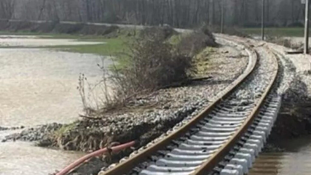 La piena del fiume Amato provocata dal maltempo che si è abbattuto in questi giorni sulla Calabria ha scavato sotto il tracciato ferroviario della linea Cosenza-Catanzaro lasciando il binario sospeso sopra l'acqua per alcuni metri. Si tratta di una linea fuori esercizio dal 2009.