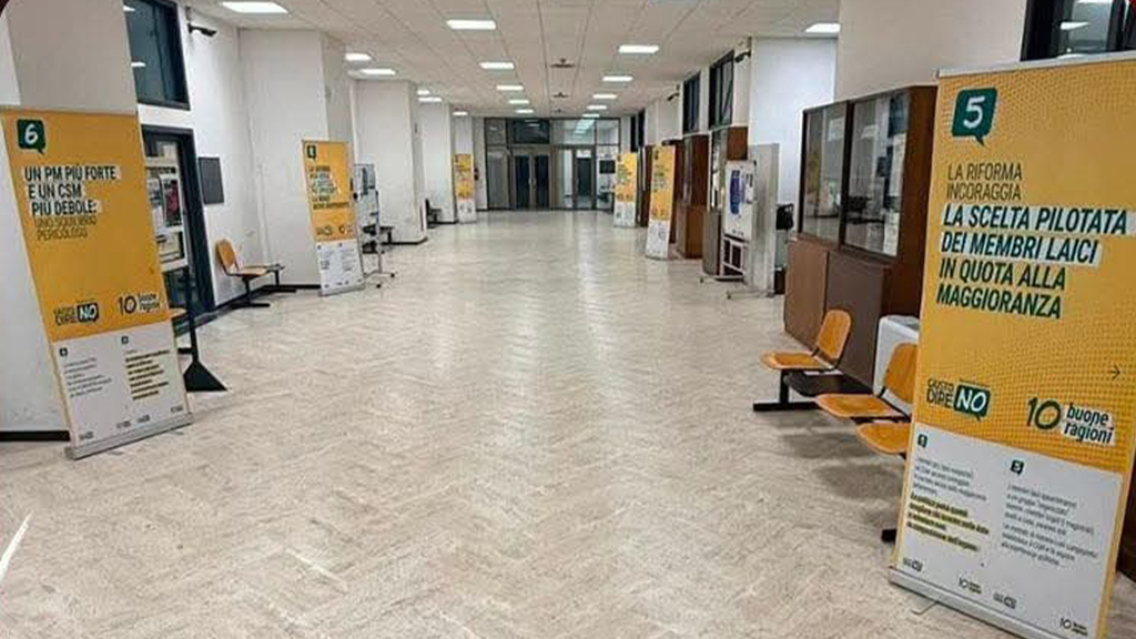 Alcuni cartelli che invitano a votare "No" all'ormai imminente referendum sulla giustizia sono stati affissi all'interno dei locali del Tribunale di Reggio Calabria. I roll up - sulla scorta di una foto pubblicata dalla pagina facebook nazionale di Fratelli d'Italia - sarebbero installati in spazi comuni frequentati da personale amministrativo, avvocati e cittadini.