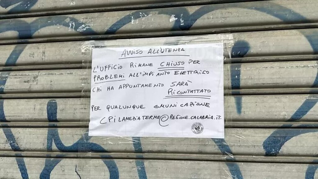Accade a Lamezia Terme dove gli uffici del Centro per l'impiego, ubicati in uno stabile comunale di Corso Numistrano, sono costretti a chiudere e cessare le prestazioni.