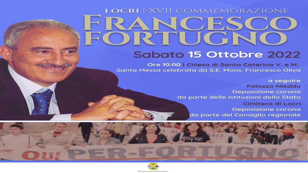 È in programma il prossimo sabato 15 ottobre a Locri l’annuale giornata commemorativa in ricordo di Francesco Fortugno, Vicepresidente del Consiglio regionale della Calabria assassinato dalla 'ndrangheta nel 2005. La manifestazione prenderà il via alle ore 10.00 con la celebrazione della Santa Messa nella Chiesa di Santa Caterina V. e M. officiata da Monsignor Francesco Oliva. A seguire, la giornata proseguirà a Palazzo Nieddu dove si terrà la deposizione della corona da parte delle Istituzioni dello Stato. L’iniziativa si concluderà, infine, al cimitero di Locri in cui è prevista la deposizione della corona ad opera del Consiglio regionale della Calabria nella cappella che accoglie le spoglie di Franco Fortugno.