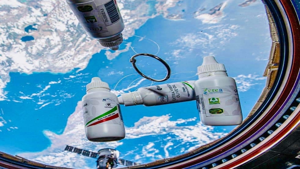 Uno scatto postato dal presidente della Regione Calabria, Roberto Occhiuto ma scattato da Samantha Cristoforetti che vede protagonista l'Olio EVO della Calabria e non solo.